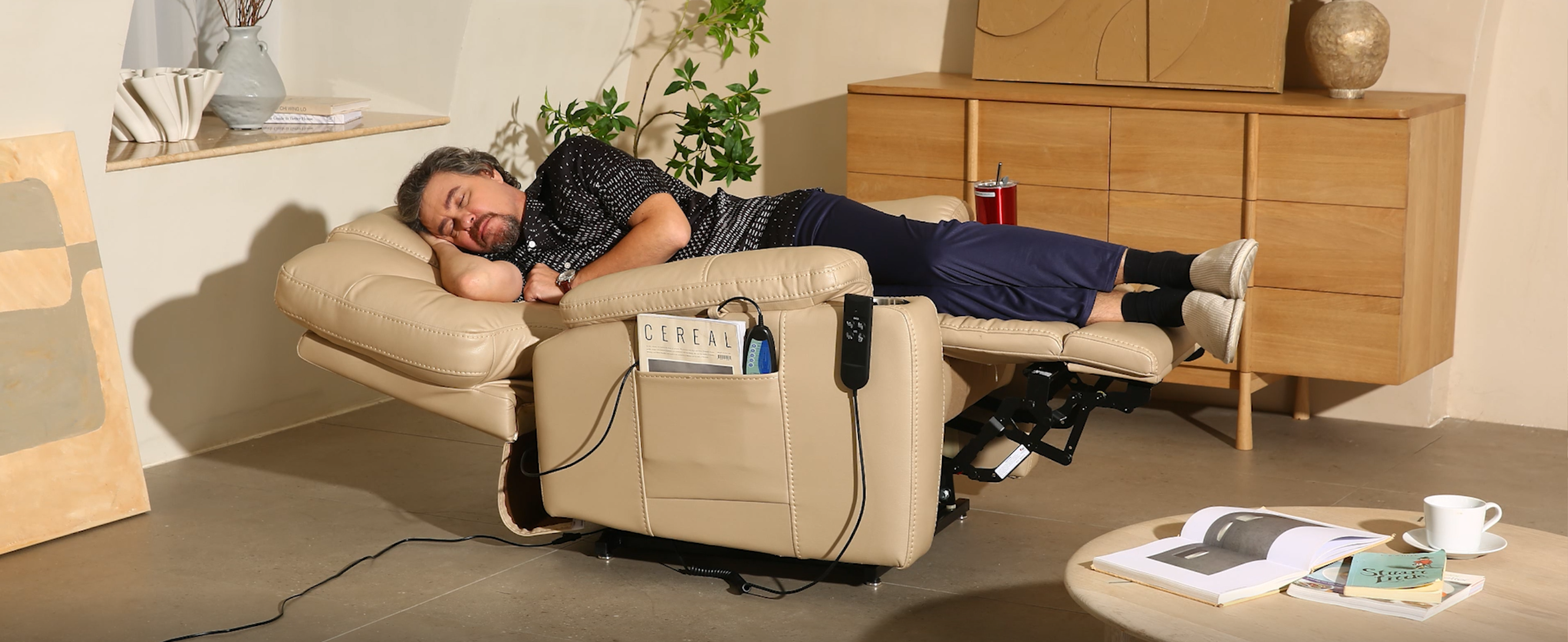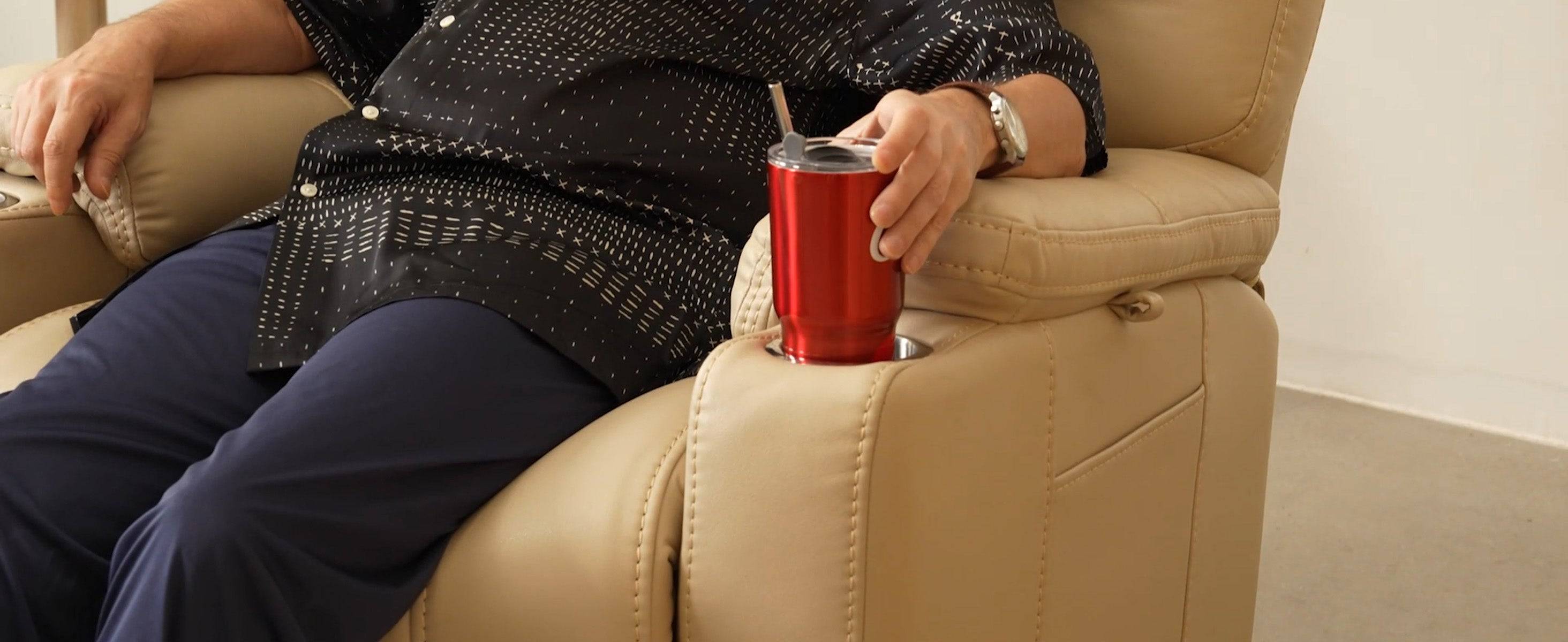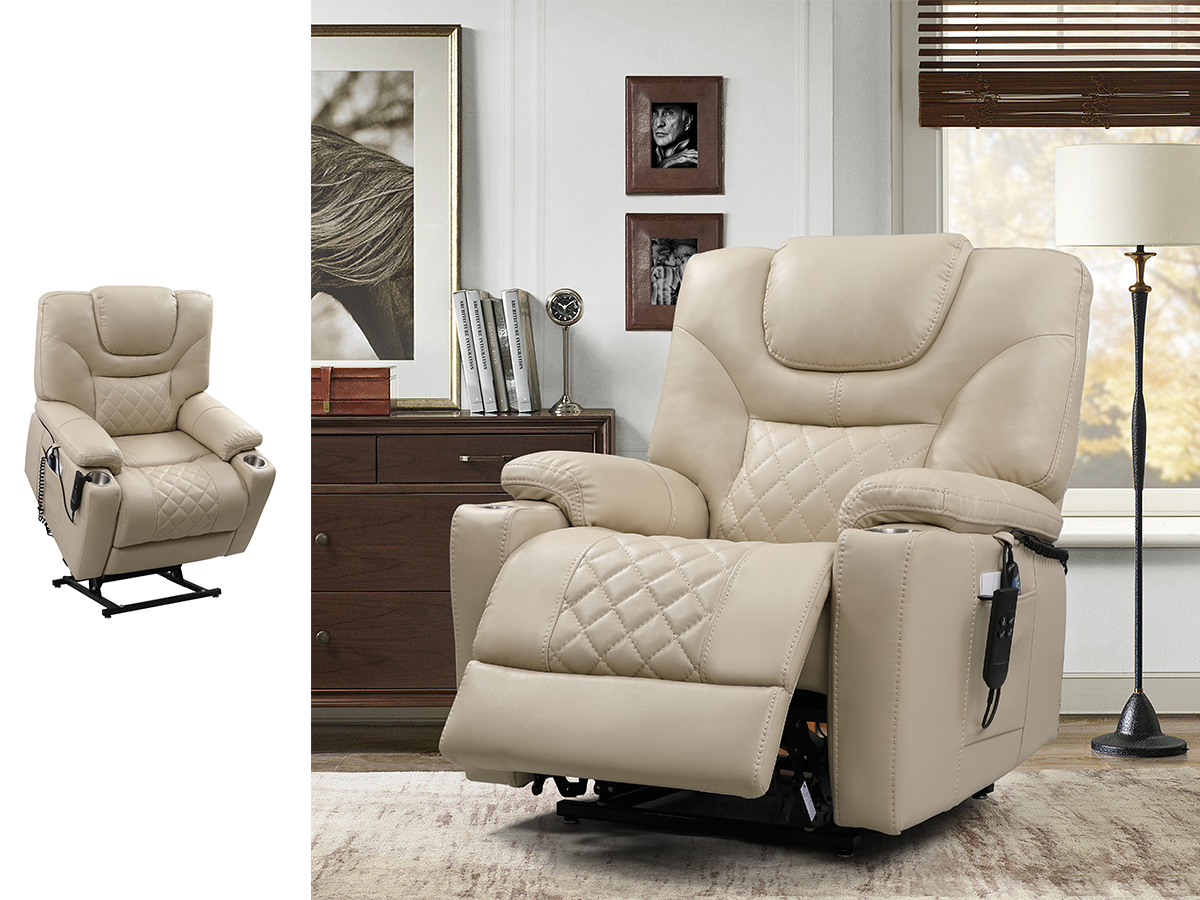 PUG258Y 9988 Electric Lift Recliner with Dual Motors, 2 Cup Holders - Beige