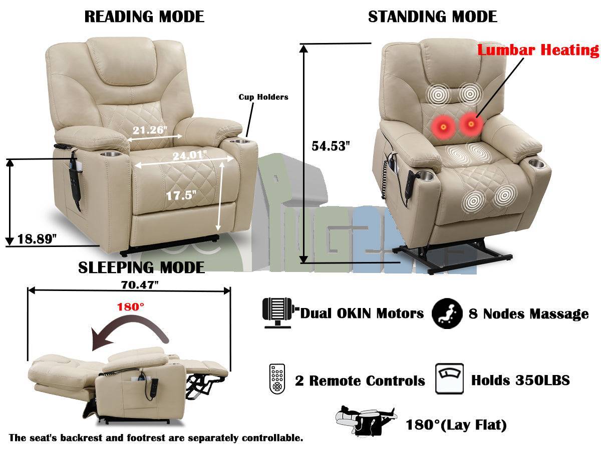 | Lift Chair Size: | 39.8"D x 36.2"W x 41.3"H |