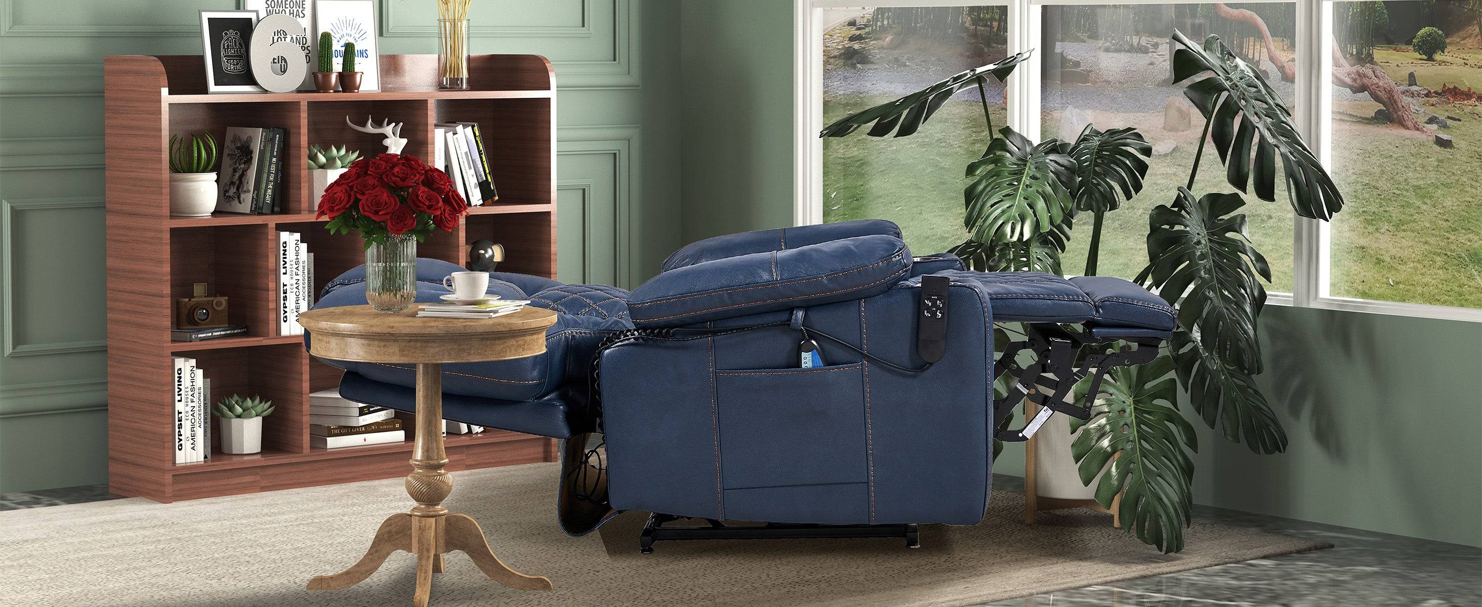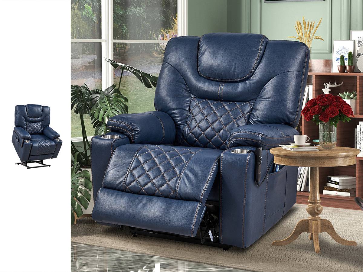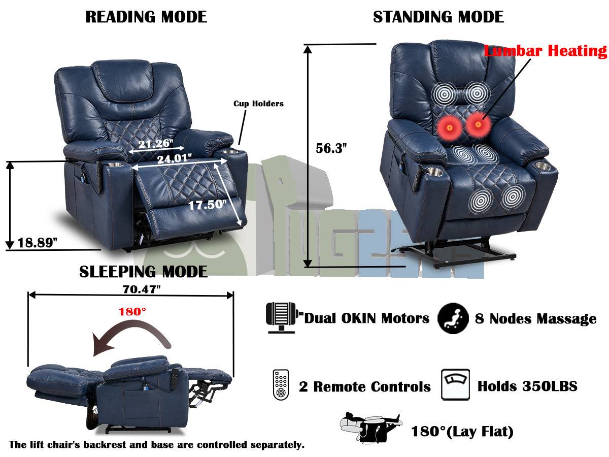 PUG258Y 9988 Lay Flat Recliner Lift Chair for Elderly - Heat&Massage, - Navy Blue