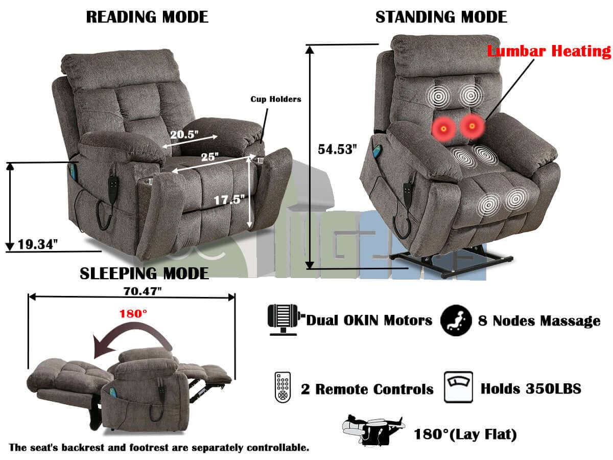PUG258Y Dual OKIN Motors Power Lift Chair Reclining To 180