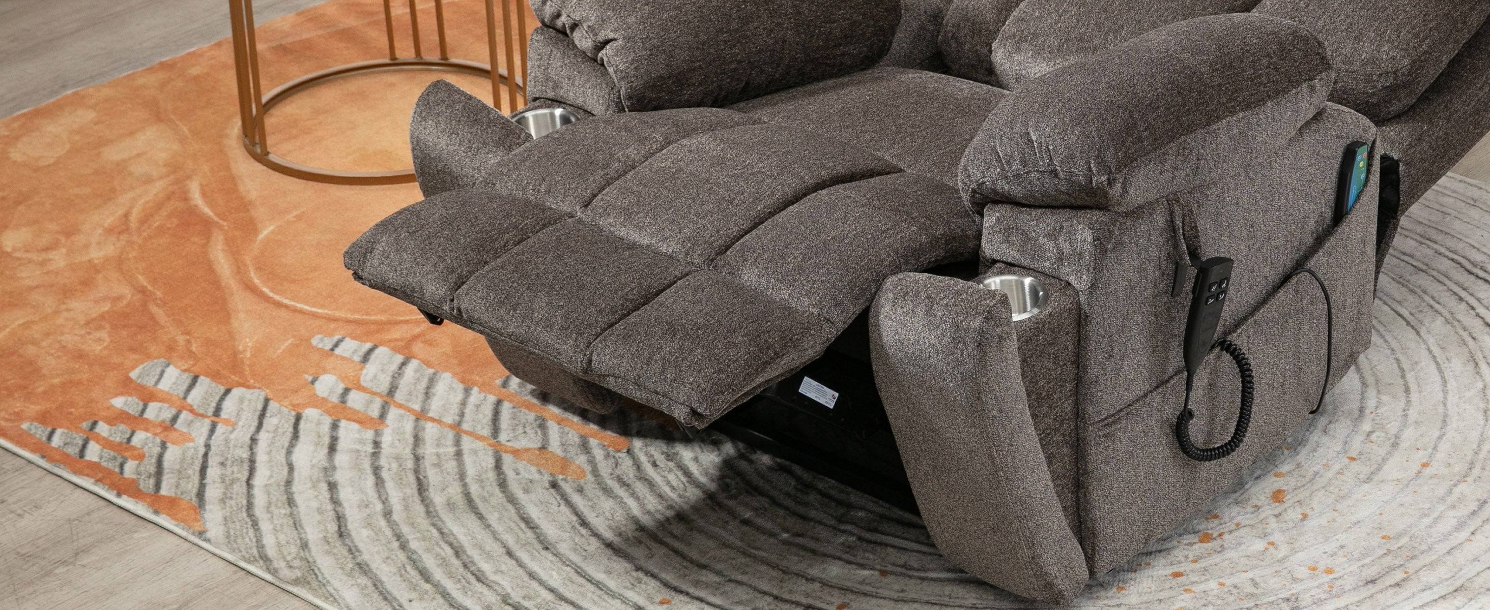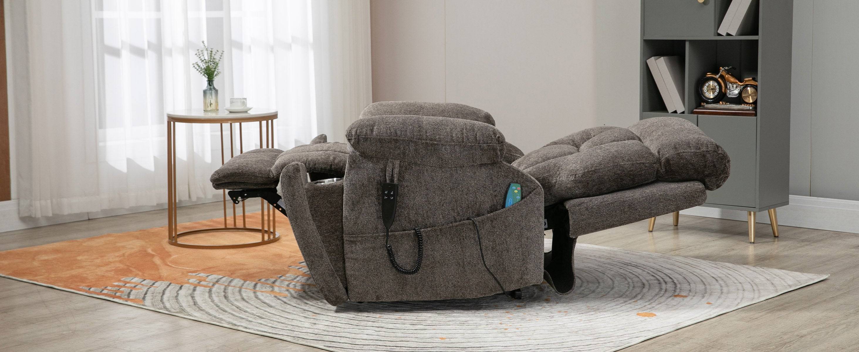 PUG258Y 9689Plus Lay Flat Lift Recliner with Heat&Massage for Seniors, Hidden Cup Holders - Dark Brown
