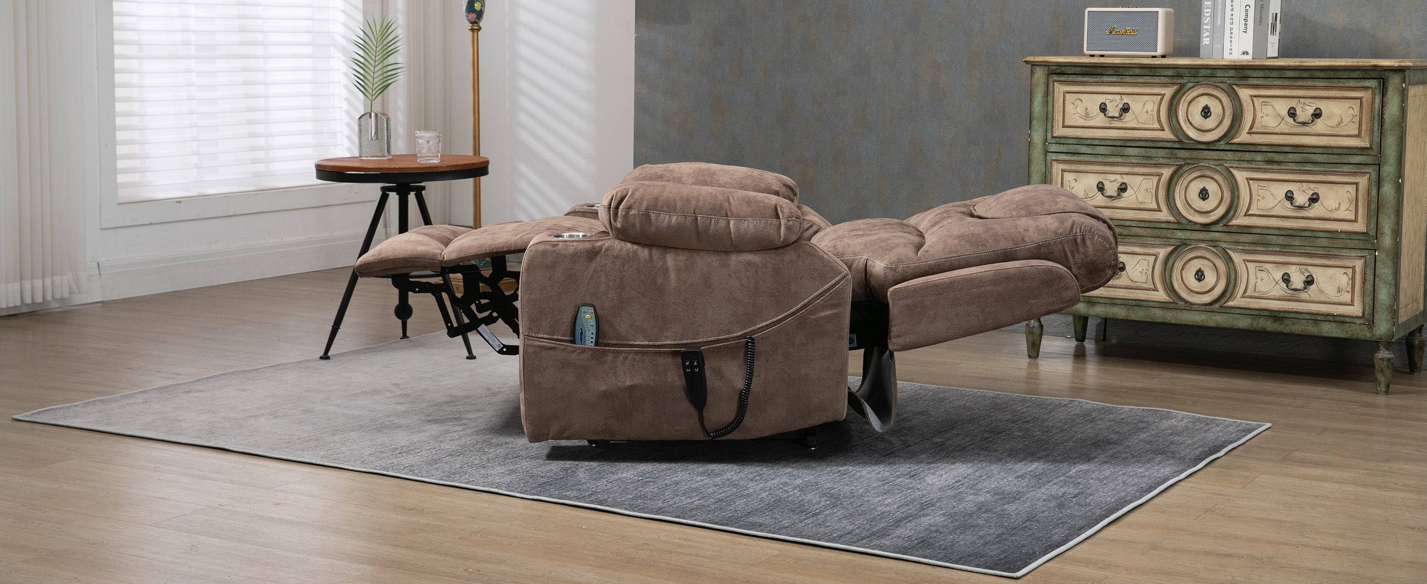 PUG258Y High Density Foam Power Lift Chair - Massage, Reclines to 180°, Remote Control -Brown Camo