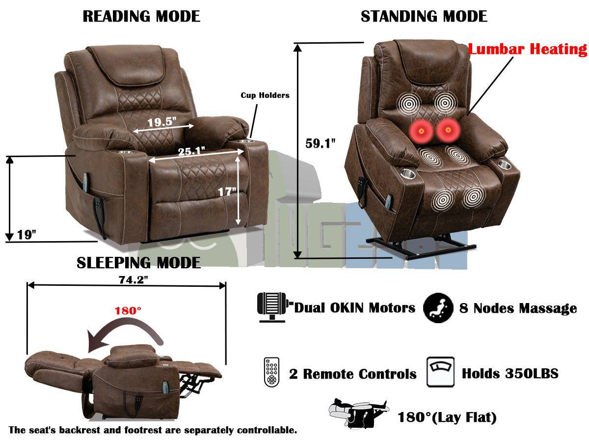 PUG258Y Dual OKIN Motors Power Lift Chair Reclining To 180