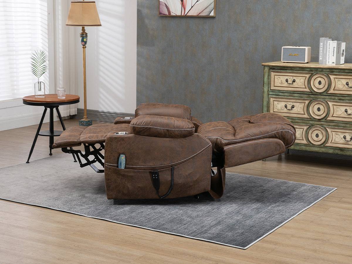 PUG258Y High Density Foam Power Lift Chair - Massage, Reclines to 180°, Remote Control -Marble Brown