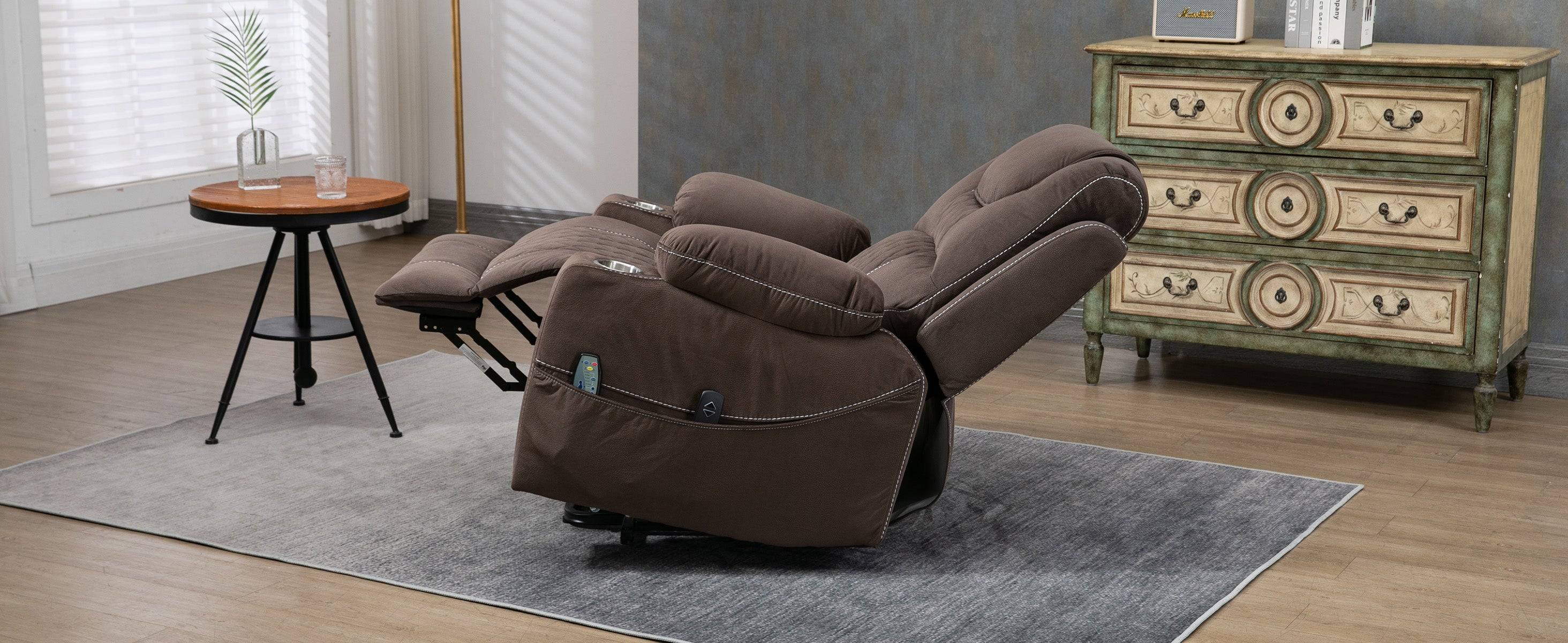 PUG258Y Power Lift Chair for Elderly: 9968 High Density Foam Lay Flat with Massage, Reclining to 165° - Toweling Latte