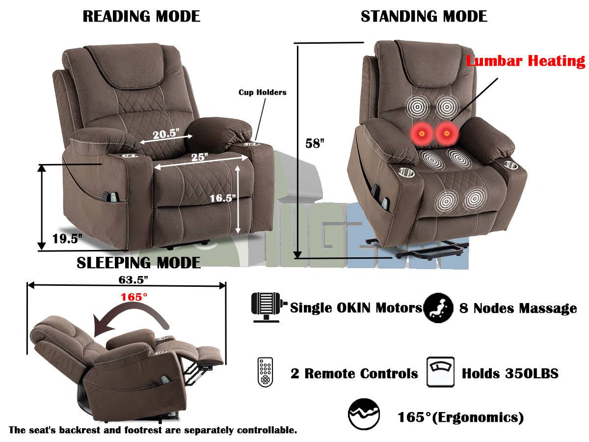 | Lift Chair Size: | 35.64"(L) x 37.4"(W) x 41.34"(H) |