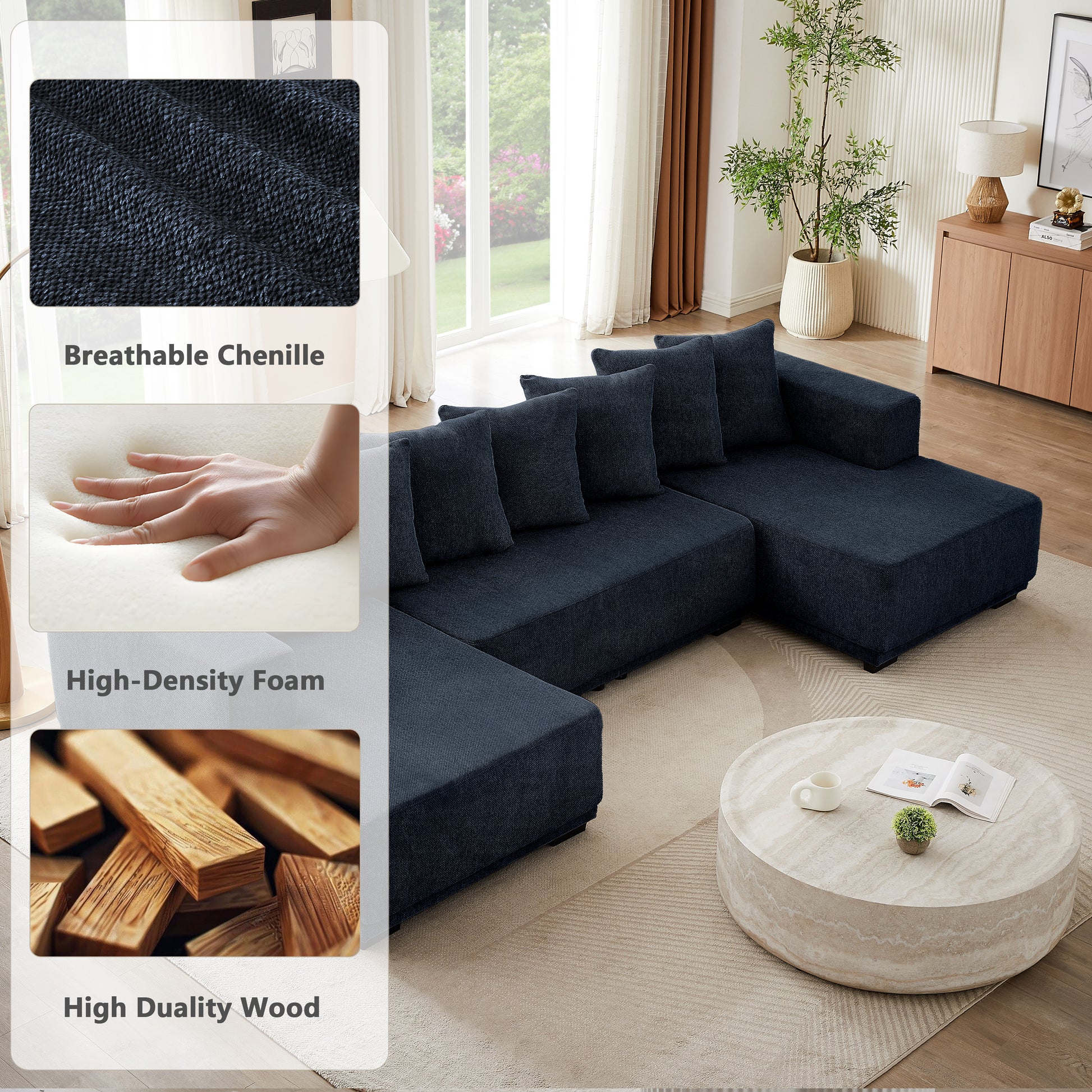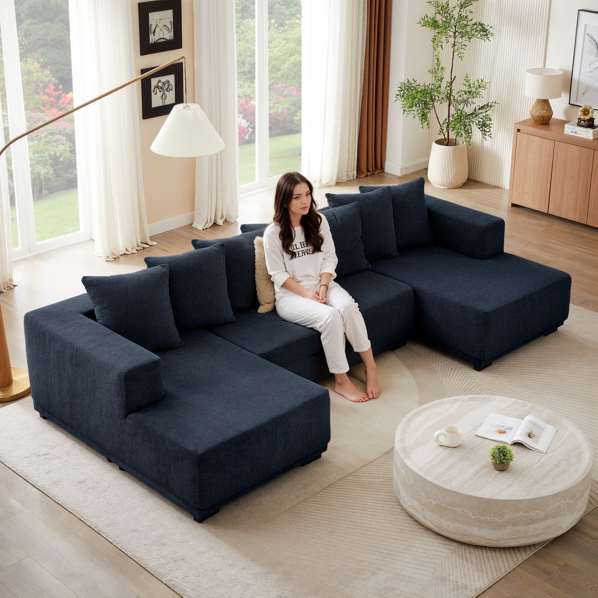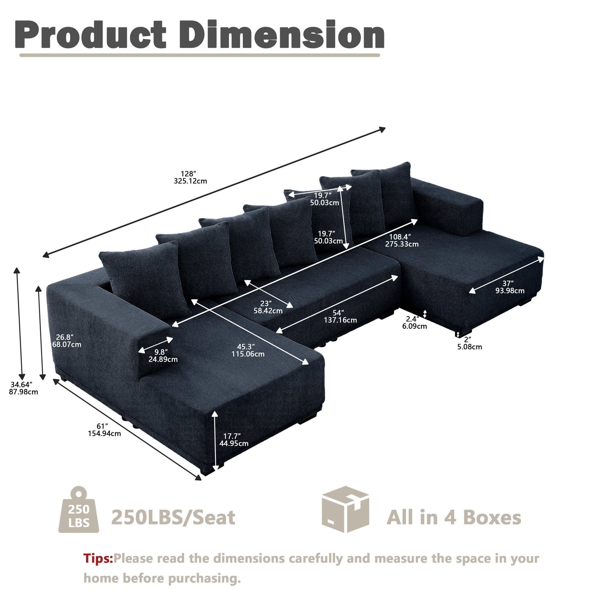 Sectional Modular Sofa Couch Bed PUG258Y: 128" Boneless 6 Seater Sectional Cloud Couch Convertible Modern Sofa Couch Bed for Living Bed Room, Office, Apartment (XL - U Shaped Couch, Navy Blue)